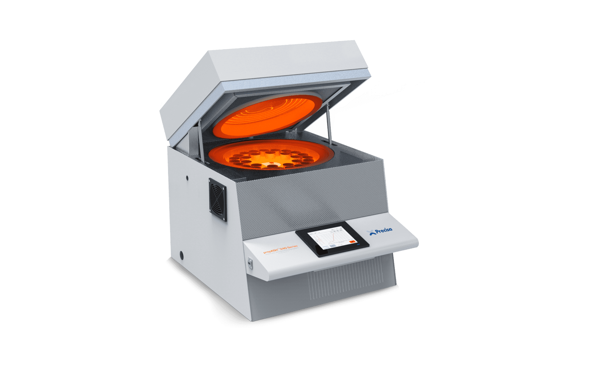 La serie prepASH 340 es lo último en la nueva generación de instrumentos de análisis termogravimétrico. Determina los valores de humedad y cenizas automáticamente y produce hasta un 80% de ahorro en carga de trabajo y costos. El prepASH proporciona mayor precisión y reproducibilidad de los resultados a través de mejoras considerables de los procedimientos manuales. Este es un instrumento donde no ocurre pérdida de datos de transferencia de tecnología y donde todo el proceso es monitoreado y registrado de principio a fin. En un ciclo de trabajo, hasta 29 muestras y un plato de referencia se incineran de forma totalmente automática de acuerdo con las últimas directrices de calidad, monitoreadas y registradas dentro de un amplio rango de temperatura de 50° a 1000°C. Cumpliendo con la norma ASTM D7582, se garantiza la seguridad y confiabilidad en el almacenamiento de datos fundamentales y parámetros de operación.