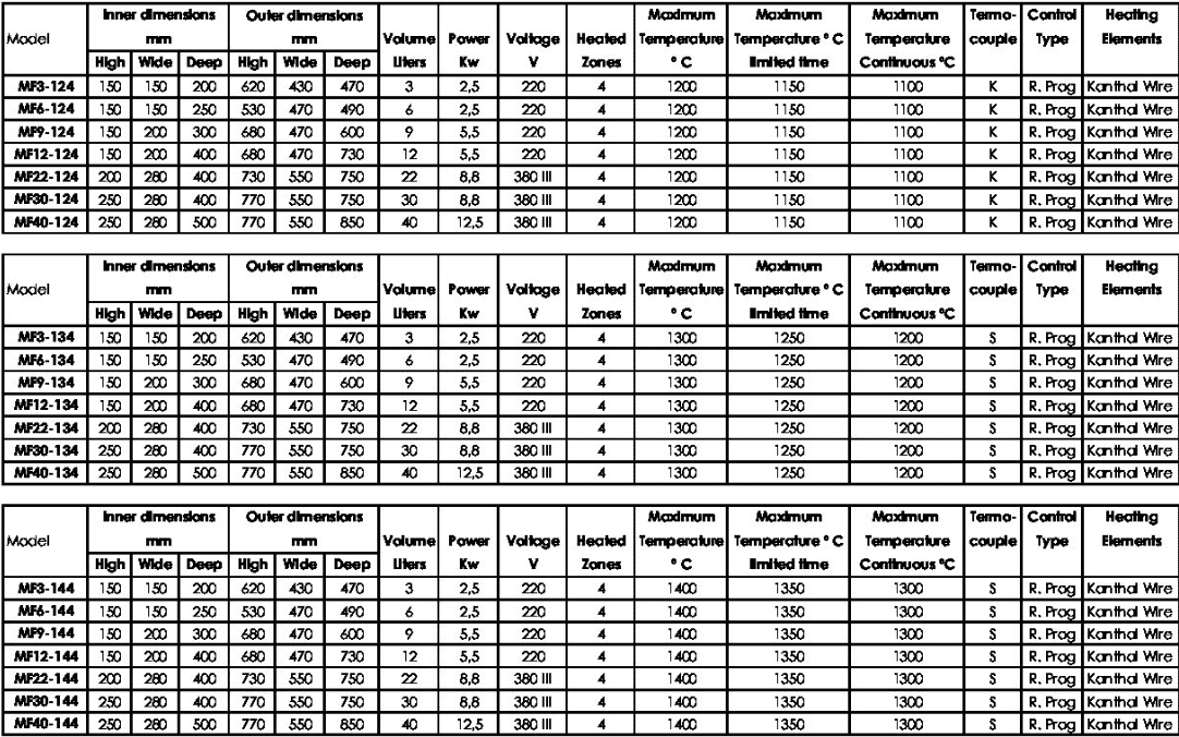 Temperatura máx. 1000ºc – 1.200ºc – 1.300c