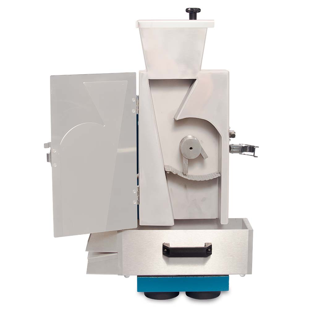 - Tapa frontal con sistema de apertura para la limpieza de la cámara de molienda